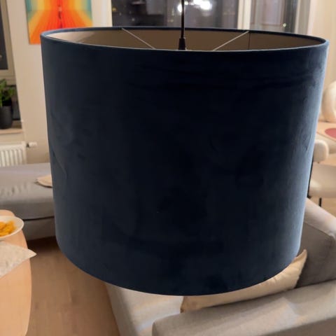 Ubrukt og nydelig lampeskjerm som dessverre ikke passer her. Et par brukne spiker, se siste bilde, men synes ikke i bruk. Må hentes.