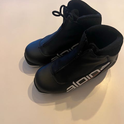 Alpina T9 langrennsko i svart farge. Skoene har glidelås foran og en solid såle med godt grep, egnet for langrenn. Modellen er laget med fokus på komfort og funksjonalitet. Brukt noen få ganger av Erle.