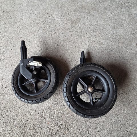 Bugaboo forhjul til barnevogn, sort farge, laget i slitesterkt materiale. Passer til Fox Bugaboo 1 til 3.barnevogner.