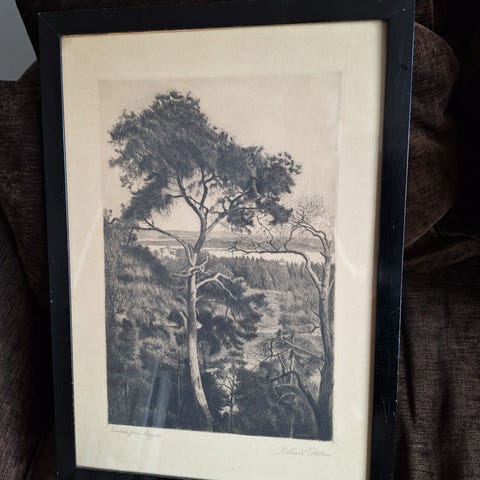 Pent innrammet med passepartout, antirefleksglass og ramme i gullfarge. 41x35 cm. Tekst på baksiden er skrevet av Peter Christen Asbjørnsen.