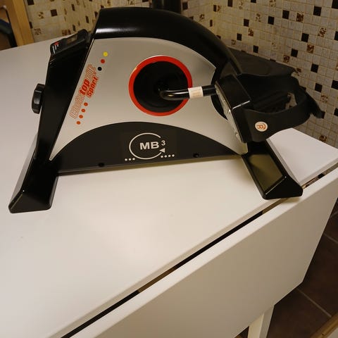 Maxfit KS-MB7093 trimsykkel i hvit farge. Utstyrt med digital skjerm for måling av tid, distanse, fart, puls og kaloriforbruk. Maks brukervekt på 110 kg.