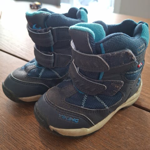 Viking barnesko for unisex, størrelse 23. Skoene har borrelåslukking og er designet for å gi støtte og komfort til barnets føtter.