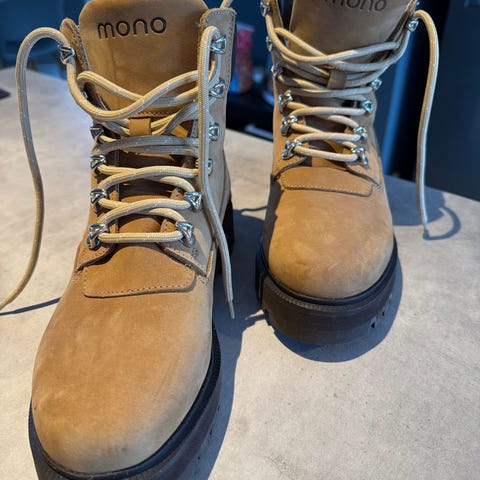 Selger disse dritkule Mono vinterskoene som dessverre ble kjøpt for små. Brukt en liten tur før jeg merket at de var for små. Les mer om skoene her: https://www.vakrevene.no/products/hiking-cap-nubuck-malto-chocolate