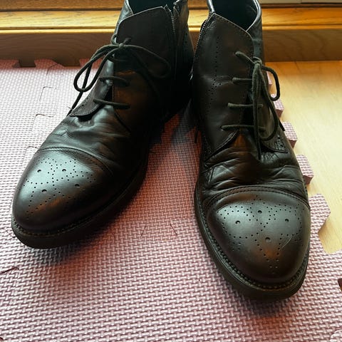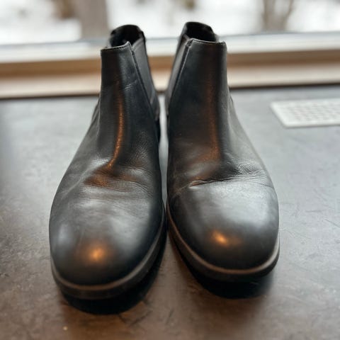 Camper pensko i størrelse 44. Skoene er grå og har lisser. Yttersålen har mønster for grep. Egnet som formelle sko eller til hverdagsbruk.