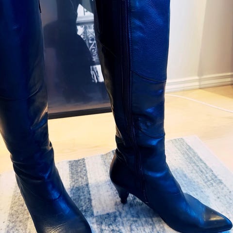 Støvler i størrelse 39 med svart farge. Designet med glidelås på siden for enkel på- og avkledning. Passer til ulike anledninger og kan kombineres med flere antrekk.