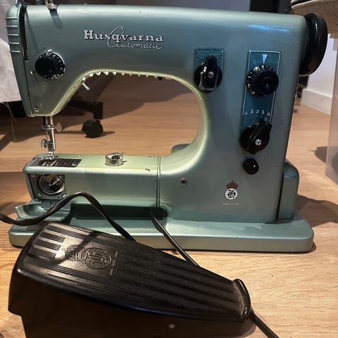 Selger min symaskin da den ikke blir brukt. Den funker helt som den skal, enkel å bruke, og fremstår som ny.