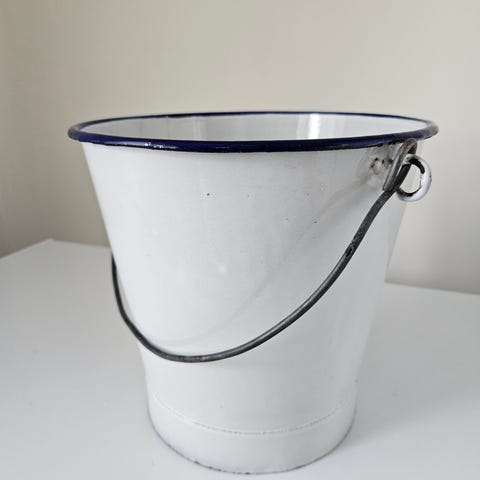 Selger 2 stk. spann/melkespann i grå og gul emalje. Vintage, produsert i tidligere Sovjetunionen, kjøpt i Georgia. Retro. Perfekt som dekorasjon i interiør, f.eks. på hytta? Det grå spannet er 15 cm i diameter og 26 cm høyt. Det gule spannet er 14 cm i diameter og 20 cm høyt. 250 kr for det grå, 200 kr for det gule, eller 400 kr samlet. Kan hentes (Grünerløkka eller Sentrum) eller sendes.