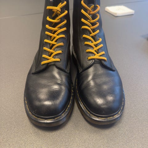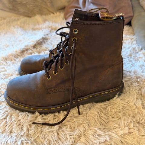 Dr. Martens støvler i størrelse 44, svart farge. Laget i slitesterkt materiale med elastiske sidepaneler for enkel på- og avkledning. Egnet for daglig bruk og ulike værforhold.