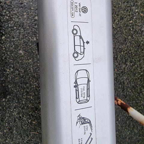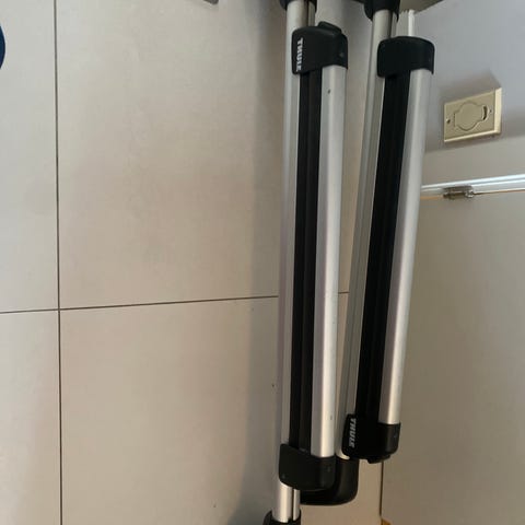 Thule takstativ tverrbjelker med lengde på ca 83 cm. Laget av aluminium med svarte plastdetaljer. Brukes til montering på bilens tak for å frakte ekstra last.
