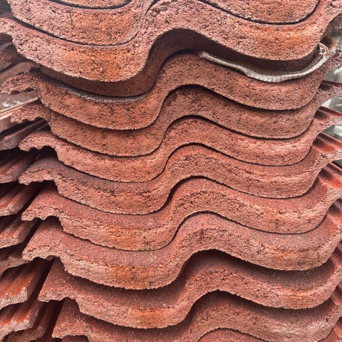 Ca 2000 vanlige teglpanner (kr 12 pr stk) høyre og venstre kantpanner og mange mønepanner selges. De står klar i innkjørselen til henting.