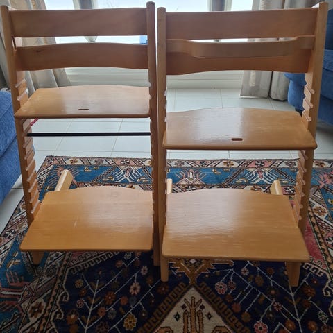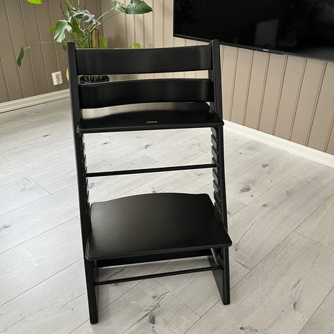 Malt tripp-trapp-stol fra Stokke. En del bruksmerker. Selges derfor veldig billig.