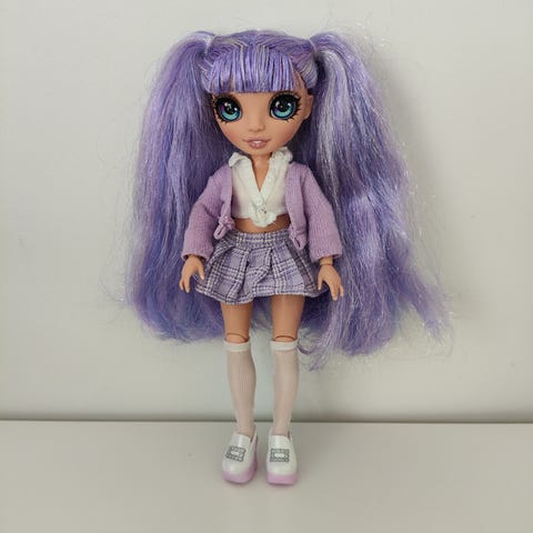 Pent brukt Rainbow high junior dukke uten klær. Mes dukkesko og en sekk.