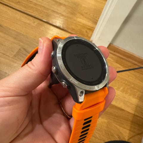 Pent brukt Garmin Forerunner 965, kjøpt november 2024. Det er brukt beskyttelsesdeksel til klokkehuset, som derfor er uten bruksmerker.