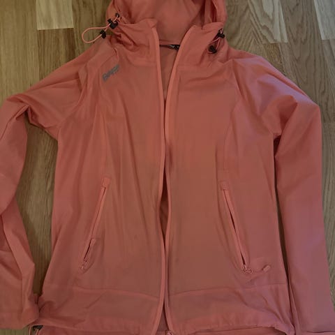 Heldre regnjakke i størrelse XS for dame. Jakken er rosa og laget av polyester. Den har hette og flere glidelåslommer for oppbevaring. Lufting under armane.
