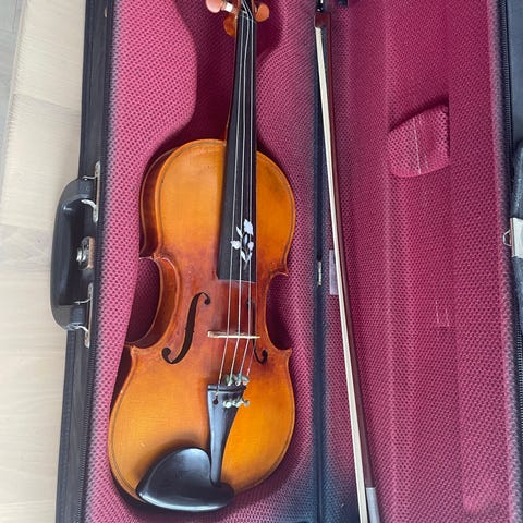 Fiolin laget av Arvid Olsen på Dokka 1974 mod Nr. 3. med 2stk buer. må bytte strenger.