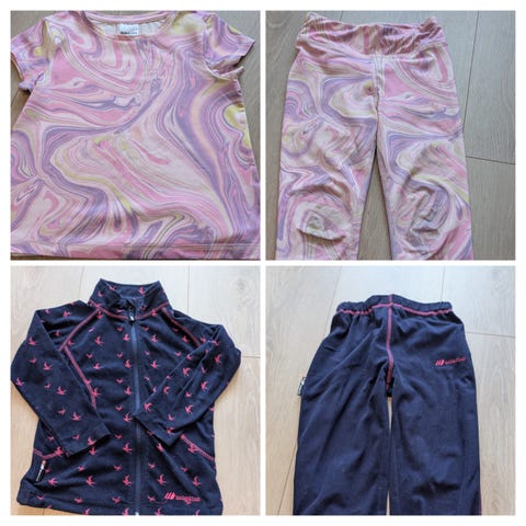 Pent brukt Isbjörn of Sweden barneheldress i størrelse 110, laget av polyester. Dressen har en rosa overdel og svarte ben, med hette og glidelås foran. Passer for både gutter og jenter.