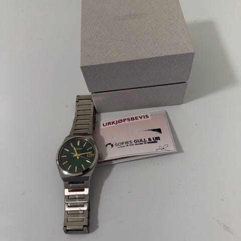Strøken Seiko sapphire herreklokke fra 2025 selges.