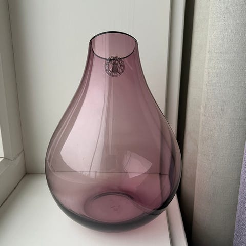 Vasen er rosa, men ser litt oransje ut på noen av bildene.
