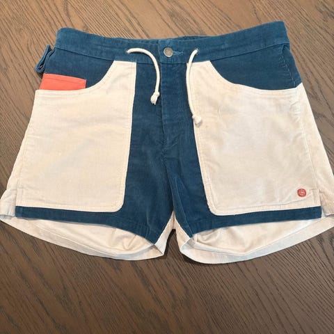 Amundsen 7incher concord shorts til herre i størrelse L. Brun og hvit bomullskordfløyel med 2% elastan.