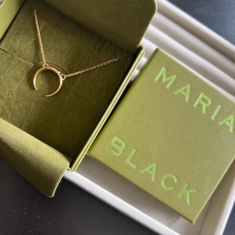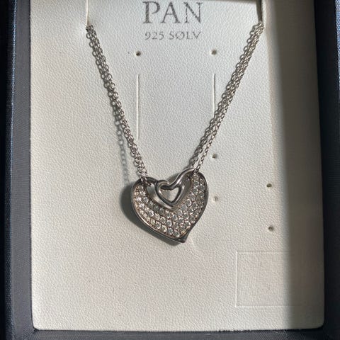 Pan London halskjede med bokstav M som anheng, laget i gullfarget metall. Halskjedet har en tynn lenke og leveres i original eske. Ikke brukt