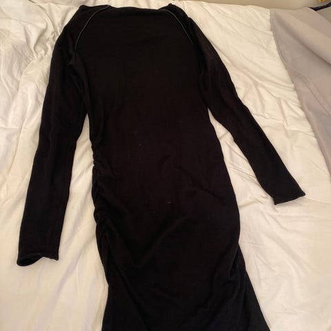 WoolLand kjole i svart farge, størrelse S, laget av ull. Kjolen har lange ermer og en enkel, tettsittende passform.
