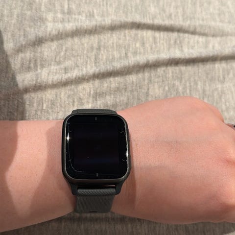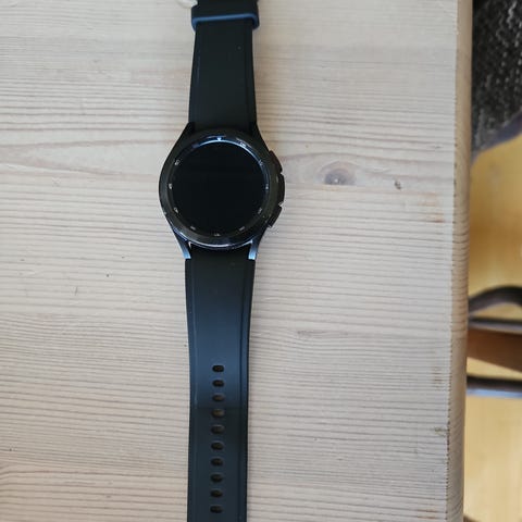 Smartklokke med rund urskive og svart silikonrem. Klokken har berøringsskjerm og flere justeringshull i reimen for tilpasning til håndleddet. Passer til daglig bruk og aktivitetsovervåking, avhengig av støttede funksjoner fra produsent og modell. Leveres i eske som vist på bildene.