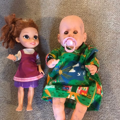 Den ene Anna har batteri som kan byttes. Trykke foran så synger? Må bytte batteri og prøve😃