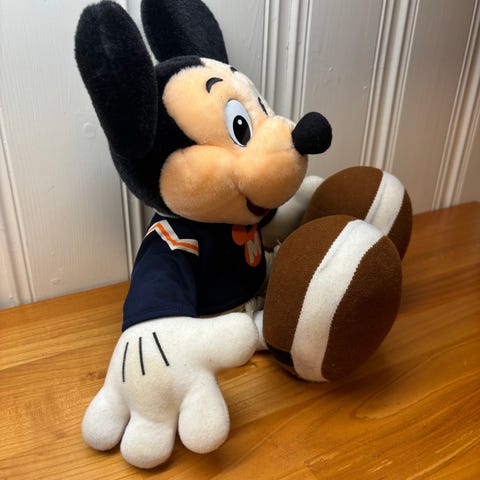Disney Mickey Mouse kosedyr kledd som astronaut med blå og hvit drakt. Kosedyret er ca. 30 cm høyt og laget av mykt materiale. Passer for barn.
