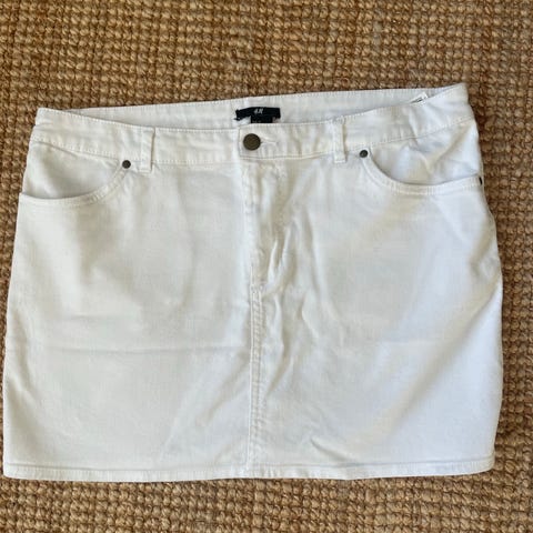 H&M denimskjørt i blå farge, størrelse 36. Skjørtet er laget av bomullsmateriale og har knappelukking foran.
