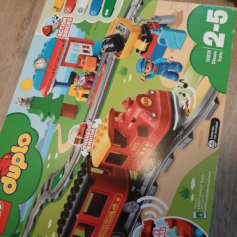 Selger en stor Duplo Togbane. Inneholder 10 togvogner (hvor en av de er Percy fra Thomas-toget), 2 figurer, 22 togskinner, en type heisekran og flere ulike deler som kan festes oppå vognene. Mye lekeverdi for pengene.