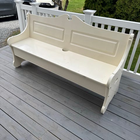 Brukt for at minstemann skulle rekke opp til vasken på badet her, men kan pint benyttes som krakk eller til å sette eks blomster på.