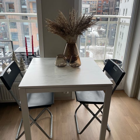 Bordet er ca 5 år gammelt, og alltid brukt med duk, og er derfor meget helt og pent. Selges på grunn av flytting.