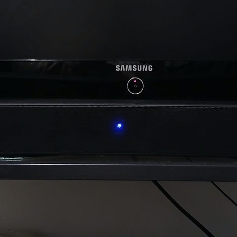 Følger med trådløs subwoofer, må sees litt nærmere på da den bare blir stående i "pairing-mode" jeg har ikke nok forståelse til å ordne den😅