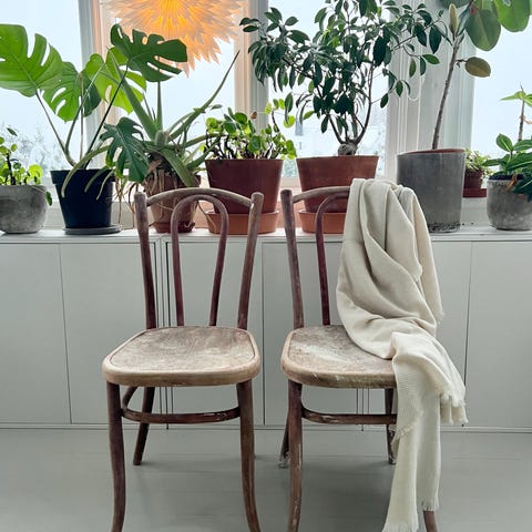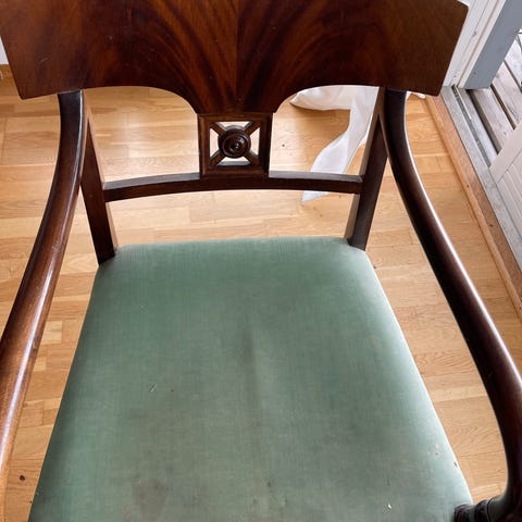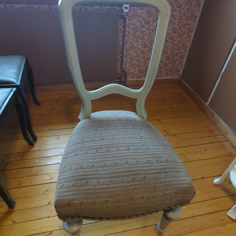 Skade på den ene øverst på stolryggen, som vist på bildet.