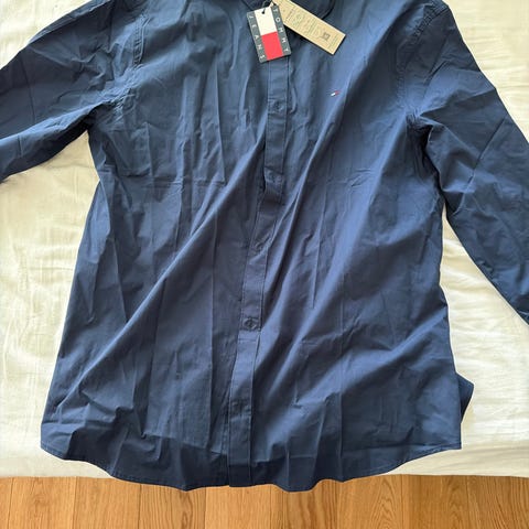Kjempefin Tommy Hilfiger skjorte str XXL, helt ny, svart, litt stretch i stoffet. Slimfit, så passer fint en L/XL også.