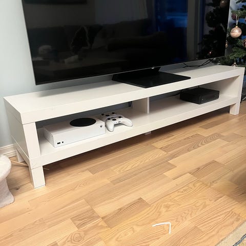 Pent brukt Ikea TV benk i sort høyglans, selges rimelig pga plassmangel. TV benken har noen bruksmerker.