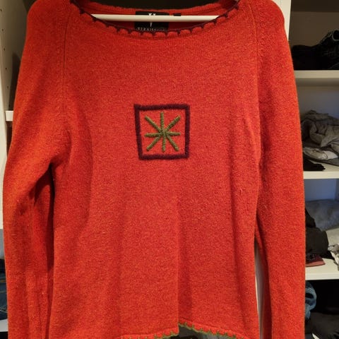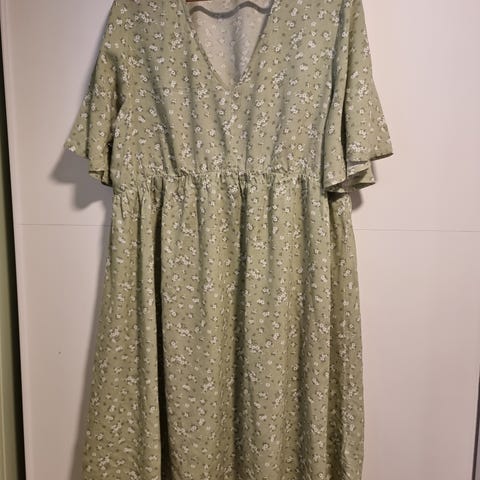 Behagelig og romslig kjole med knyting i stiden. Er en størrelse 50 fra ellos.