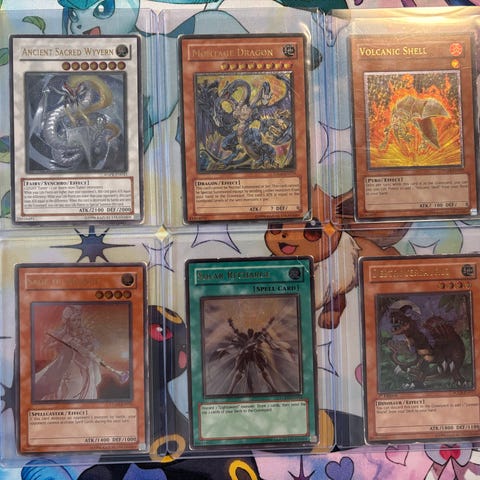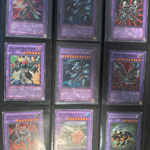 Yu-Gi-Oh! samling bestående av holografiske kort med ulike monstre og effekter. Kortene inkluderer blant annet XX-Saber Emmersblade, Fossil Dyna Pachycephalo, Blue Rose Dragon og Shard of Greed. Kortene er av standard størrelse og designet for bruk i Yu-Gi-Oh! kortspill.