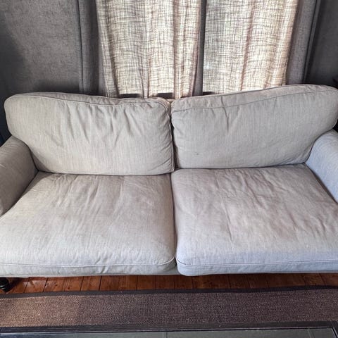 Godt brukt , litt solskadet og katteklor, men god å sitte/ ligge i.