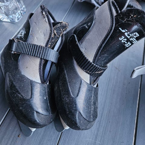 Tror de er størrelse 34 eller 35. Ikke den kraftigste skoen ift stabilitet