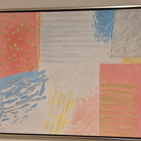 Signert maleri av Knut Flatin. Rødt mot blått» fra 1983.