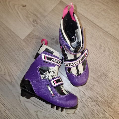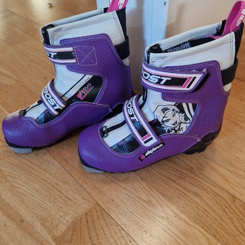 Selger blå skisko i strl 28, fra Alpina. Modellnavn Frost. Disse er fora, og man kan ta ut hele innerdelen for enklere tørking. Også en fordel at de ikke har knyting, lettere for barn å ta de av og på selv. De er brukt og har bruksmerker, men er i god stand.