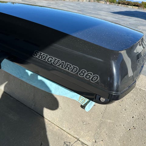 Skiguard 860 takboks, selges med adaptive takbøyler fra Thule. Takboksen har stor kapasitet (ca.500l) og har vært brukt på stasjonsvogn. Om de lurer på noko, er det bare å senda ei melding