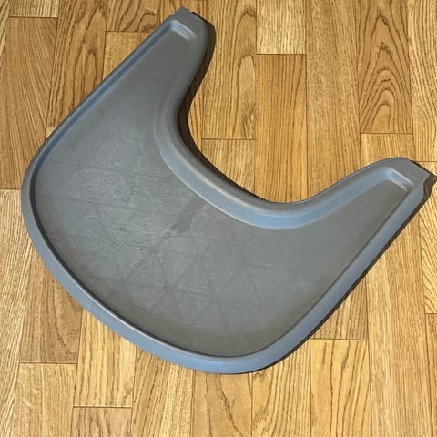Stokke Tripp Trapp brett i hvit farge, designet for å festes på Tripp Trapp barnestol. Brettet gir en praktisk overflate for barn under måltider eller aktiviteter.