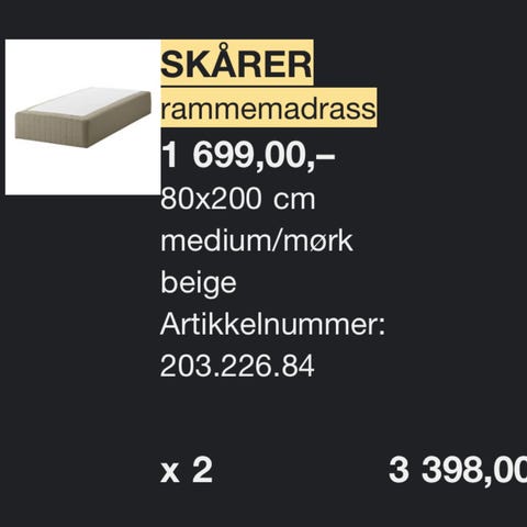 Helt ny seng. Ikke pakket opp. Feil kjøp på str.