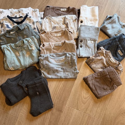 Klespakke størrelse 68 selges. Brukt til gutt men passer jente også.