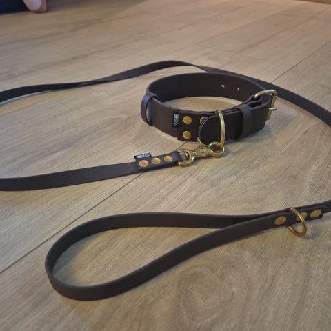 Biothane sett halsbånd og kobbel med messingdetaljer