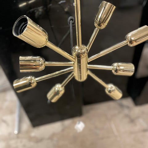 Pent brukt takpendel i kvitlakkert perforert metall. Diameter 50 cm høgde på lampe 24 cm. Svart ledning. Inkludert lyskilde.