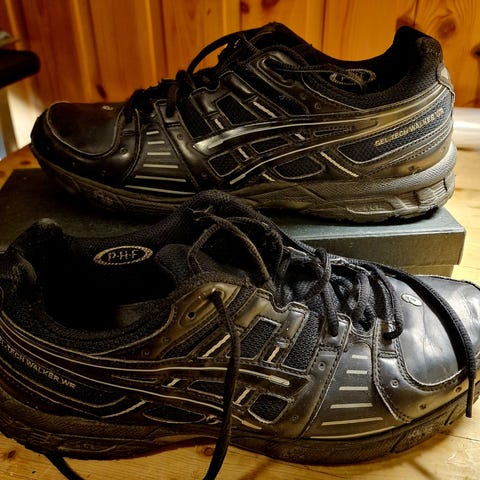 Nike sko er noe slitt, se bildet av såle. Asics er brukt kun ett par ganger da de ble for små. Selges kr. 400,- pr stk. Hentes eller sendes mot betaling.