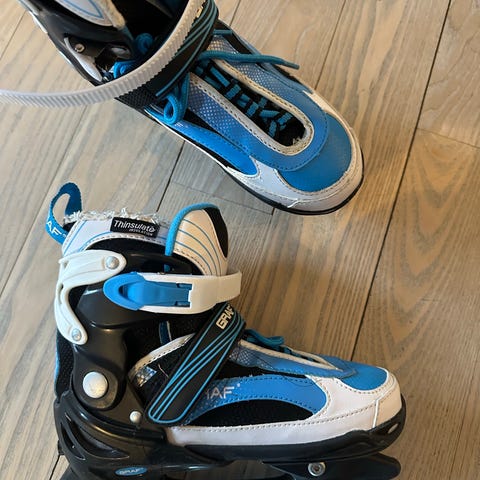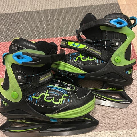 Justerbare skøyter str 30-31. Skøytene har snøring og borrelås for justering og støtte.